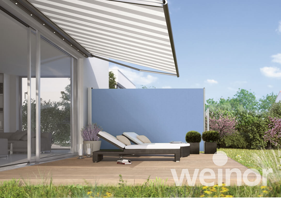 Wer sich gerne auf der Terrasse oder dem Balkon aufhält, hat von einer Markise großen Nutzen. Sie schützt vor Wind und Wetter – insbesondere vor der Sonne. Markisen spenden im Sommer Schatten und schützen vor aggressiver UV-Strahlung. Aber auch bei Regenwetter sind sie äußerst praktisch, da man unter ihnen nicht nass wird. Ein weiterer Vorteil einer Markise ist, dass sie Sichtschutz bietet und vor neugierigen Blicken abschirmt. Sogar Ihre Einrichtung kann von einer Markise profitieren: Durch den von ihr gespendeten Schatten bleichen die Möbel im Raum hinter der Markise deutlich weniger schnell aus. Um Ihnen beste Qualität zu bieten, führen wir Markisen der Marke Weinor, einem der größten Markisenhersteller in Deutschland. Nach umfassender Beratung in unserer Ausstellung – die mit 10 verschiedenen in Originalgröße ausgestatteten Markisen versehen ist – wird jede Markise vor Ort aufgemessen und Originalstoffe in Abstimmung mit dem Umfeld ausgesucht.